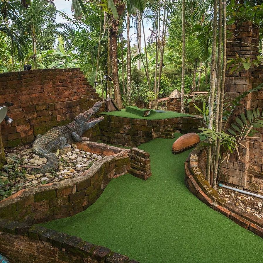 Think of the atmosphere created by an Indiana Jones movie set and that’s what you’ll find when you enter the unique world of Khao Lak Mini Golf. There are eighteen (18) holes set among quirky courses trailing their way through jungle vegetation, temple ruins, distinctive & creative obstacles and much much more.